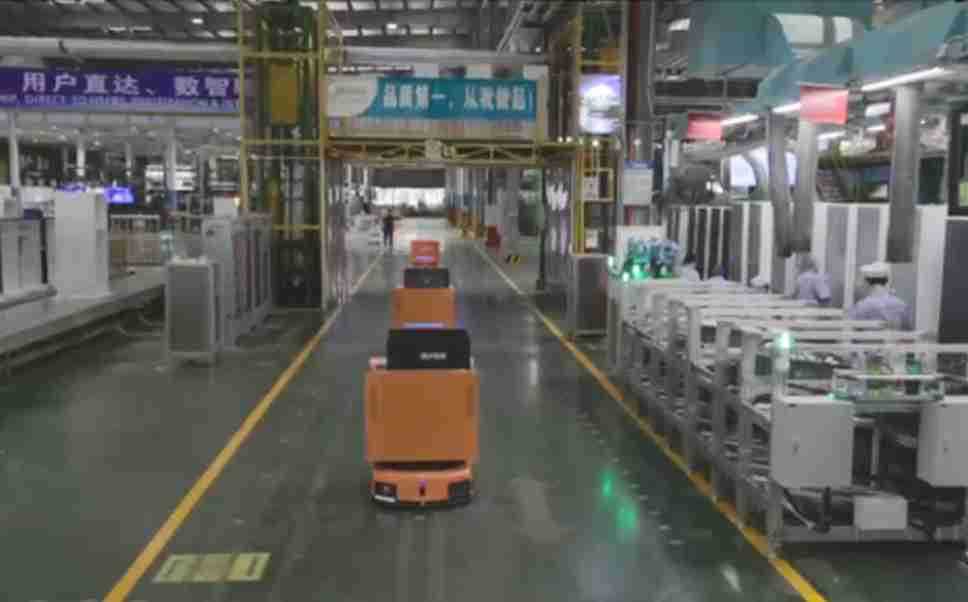 为车载冰箱物流配送打造的智能解决方案,,包含产中物流通过潜伏举升AMR搬运至线边,,,产后成品物流智能仓储,,,流程包含产中物流智能齐套入库,,线边安灯叫料AMR智能配送至线边,,,成品入库、、、、出库,,,通过无人堆高车机器人,,,智能仓储管理替代人工作业管理,,实现更高存储、、更高效率、、、、更具柔性化的解决方案。。。